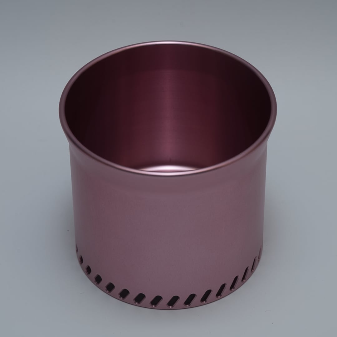 ・アルマイトの加工は、高熱や使用環境により徐々に色が変化したり、退色する場合がございます。また、傷がつくと地金の色が見えることがございます。